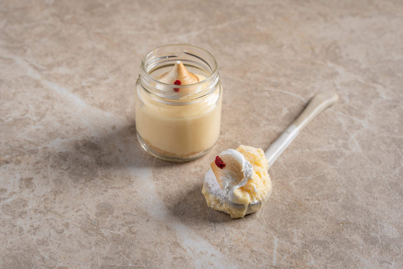 טארטלט לימון מפורק בצנצנת – מנה אישית של קרם לימון, בצק סבלה מפורק ומרנג