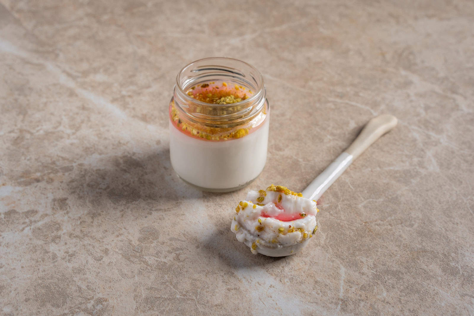 מלבי קרם שמנת והיבסקוס – מנה אישית של קרם עשיר על בסיס שמנת, סירופ חמצמץ תוצרת בית מפרחי היביסקוס
